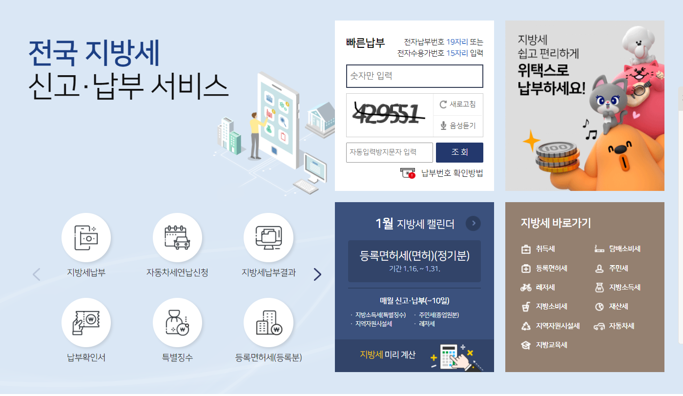 위택스홈페이지나 어플에 들어가 자동차세연납신청버튼을 클릭하거나 부가서비스-자동차세 연납신청을 클릭합니다.